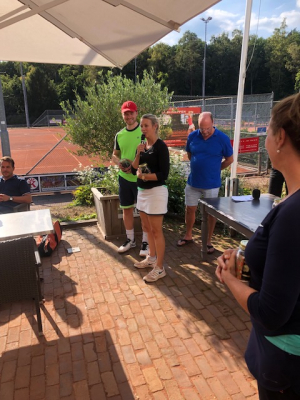 Geholpen door het mooie weer, jullie aanmeldingen en begrip voor het wel of niet aanpassen van de planning, de heerlijke maaltijden en de versnaperingen al dan niet met alcohol verrijkt, kunnen we allemaal terugkijken op een zeer geslaagd toernooi. Vooral de finales op zondagmiddag lieten zien dat De Kuil best wel wat tennispotentie in huis heeft gezien de rake klappen die werden geslagen. Maar ook degenen die voor de eerste maal meededen met minder harde slagen liepen nu al met de prijzen weg. Dat belooft veel voor volgend jaar.