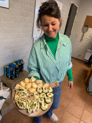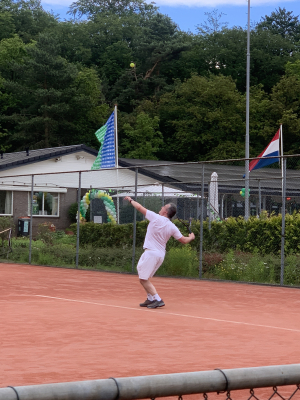 Het hoogtepunt was natuurlijk de borrelavond met meezingers door Wout de Bruin: het was gezellig druk en alle zelfgemaakte borrelhapjes vonden hun weg naar alle tennissers en supporters.